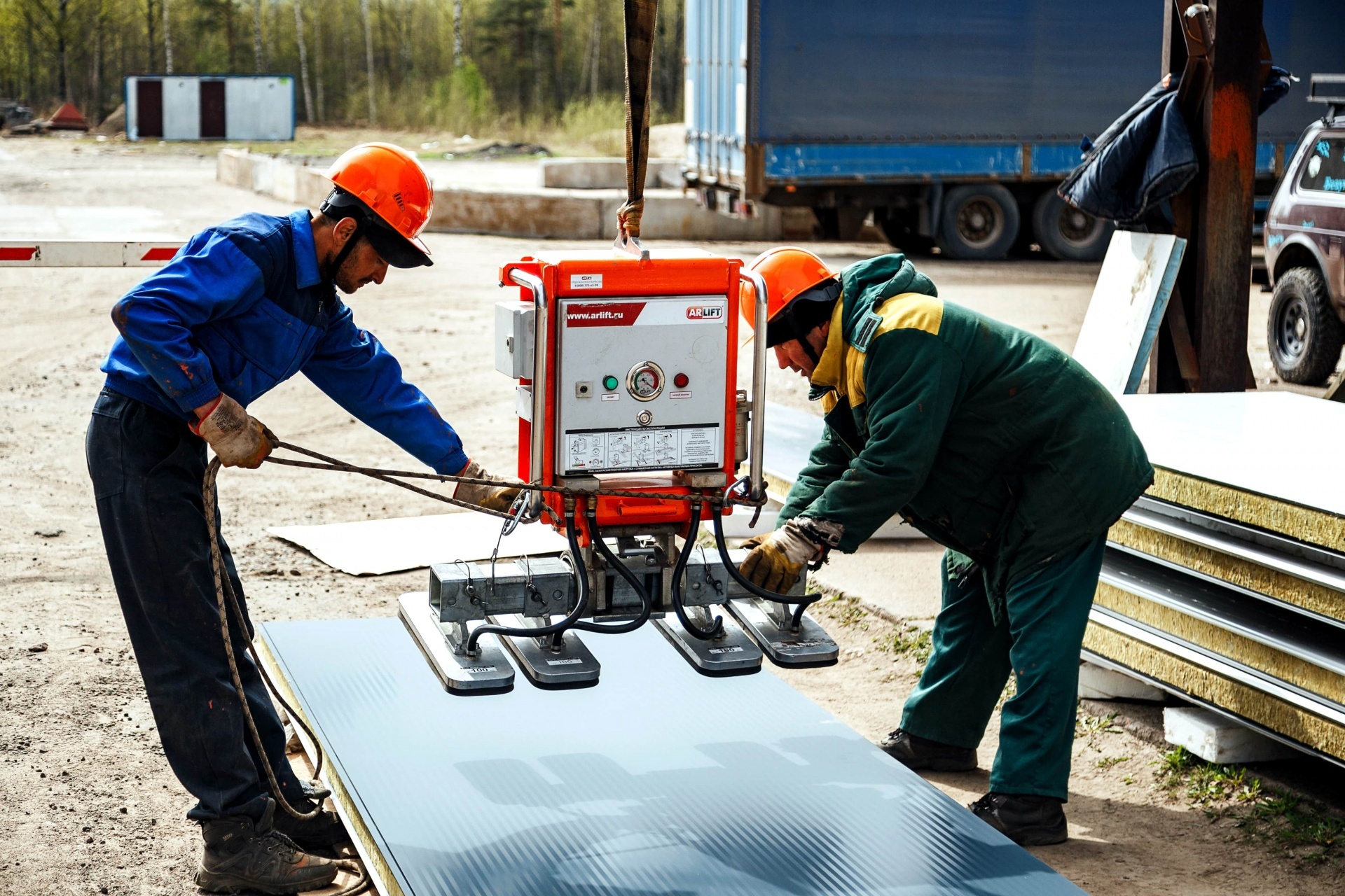 Вакуумный захват ARLIFTER SP-4 произвел монтаж 2500 кв. метров сэндвич-панелей для складского комплекса. - Горно-обогатительный комбинат в Казахстане.