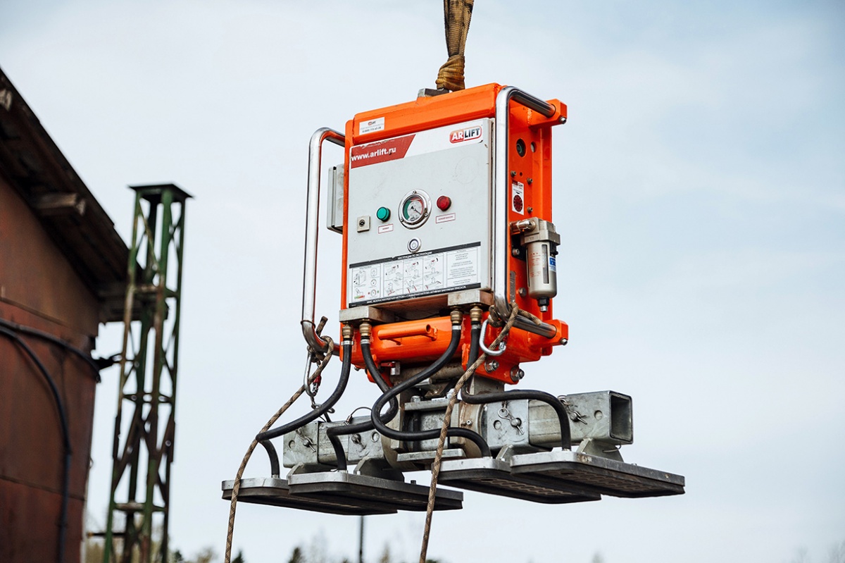 С помощью вакуумных захватов можно поднимать и перемещать стеклянные панели весом от 300 до 1500 кг. Они способны работать при любой температуре – от +50⁰С до -20⁰С. Система отделения влаги и фильтрации воздуха позволяет производить работы за пределами помещений. В наличии две системы безопасности – звуковая и световая.